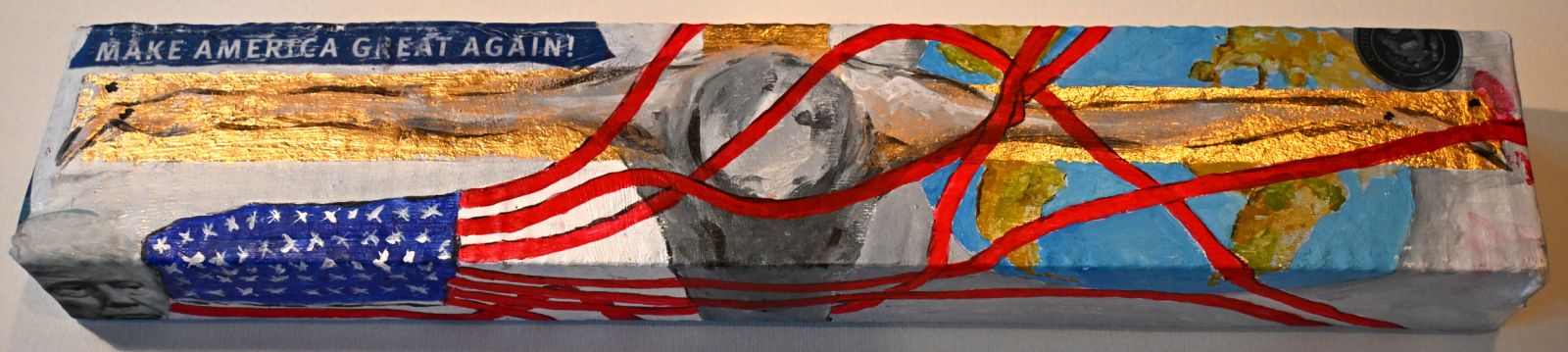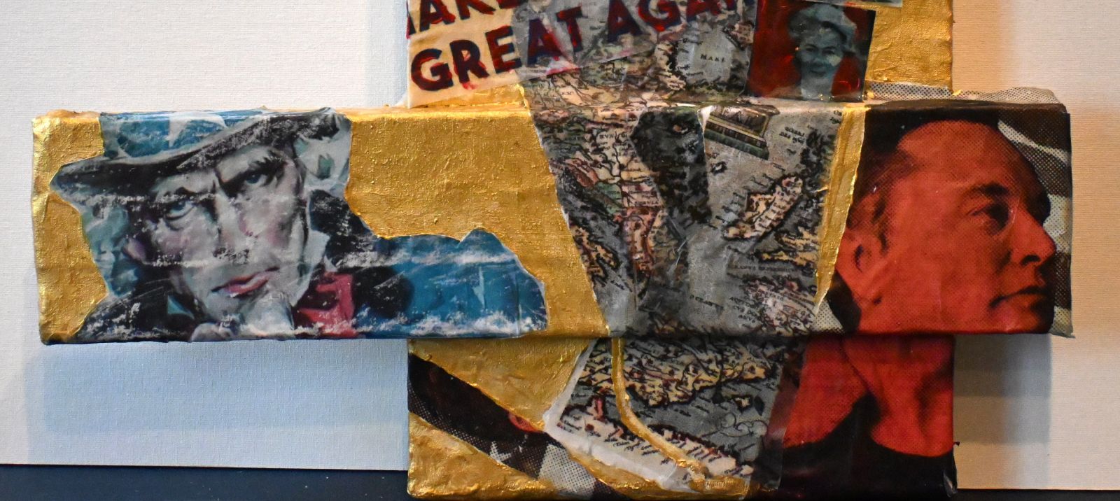Assemblage: Malerei, Collage, Blattgold, diverse Materialien