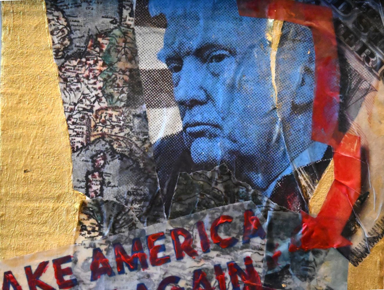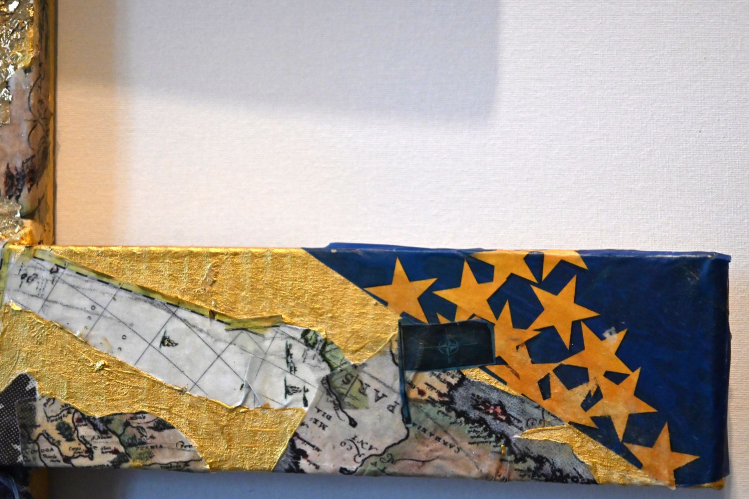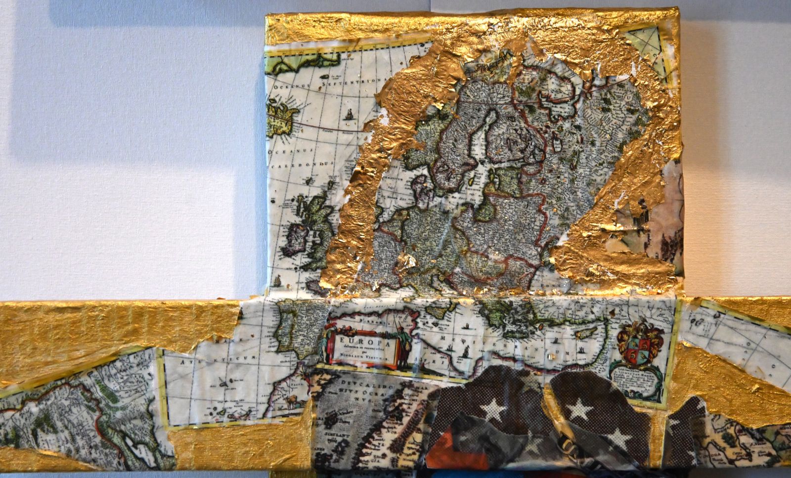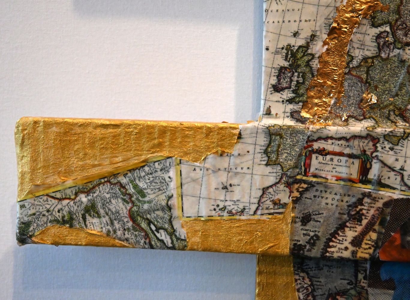 Assemblage: Malerei, Collage, Blattgold, diverse Materialien